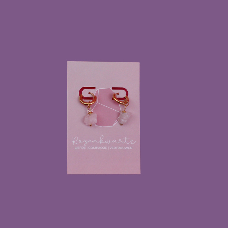 Oorbellen ruw - Rozenkwarts